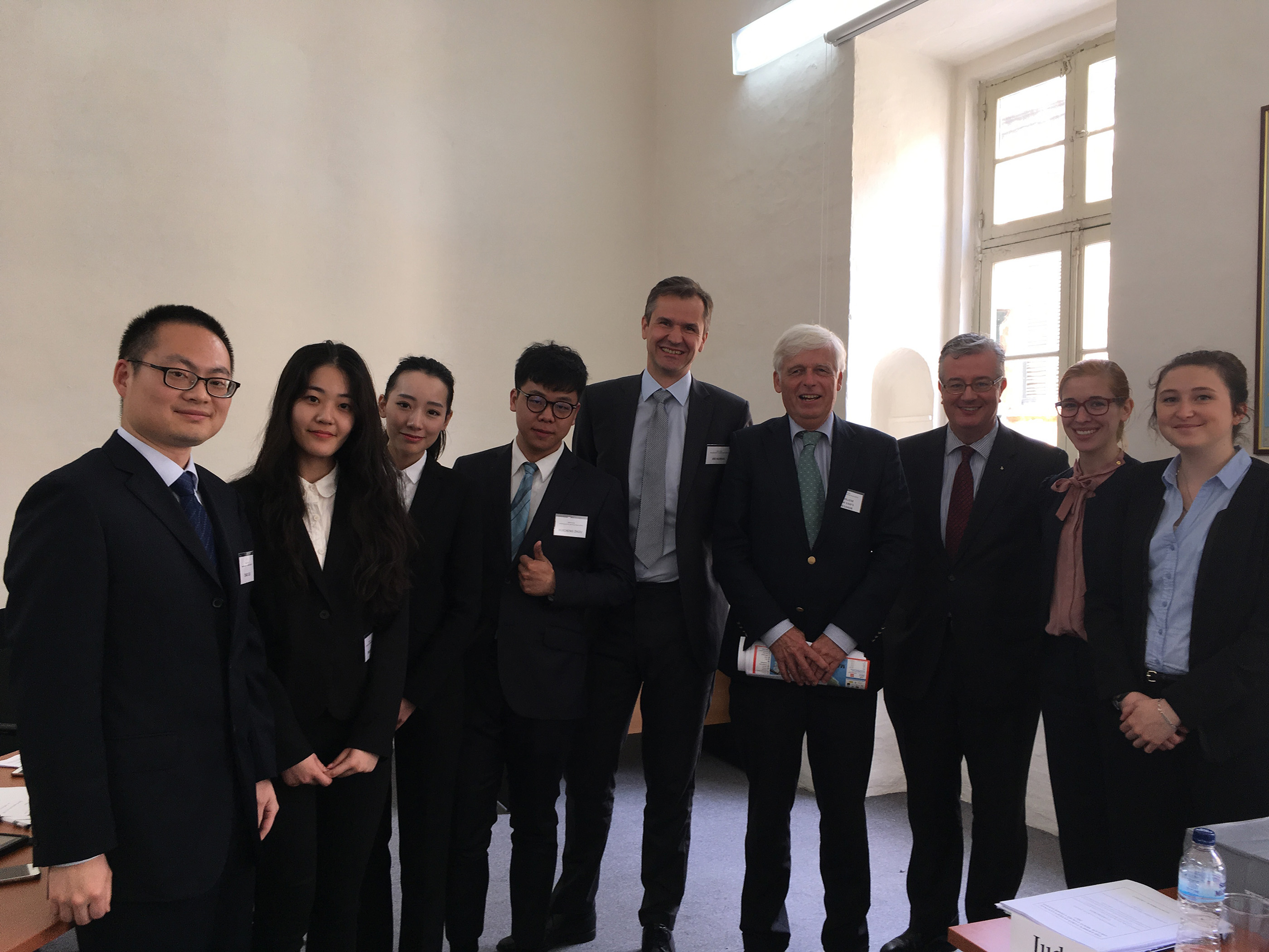 第8届国际航空法模拟法庭大赛由荷兰莱顿大学航空法与空间法研究所主办,既是国际航空法领域最知名的国际赛事,也是法律专业全球领域顶尖赛事之一。自2016年4月,法学师生积极报名,在栾爽、罗超等法学专业教师指导下,经过一年精心备赛,终于登上国际舞台。我校代表队先后对阵波兰、印度、阿联酋、法国代表队,通过给定案例文书写作、庭审辩论两个阶段,模拟国际法院的主要程序。比赛以全英文方式进行,队员们克服语言表达、原被告身份转换等挑战,直面专业法官的问题,与对手展开攻防,给法官们留下了深刻印象,最终获得团体参赛奖。