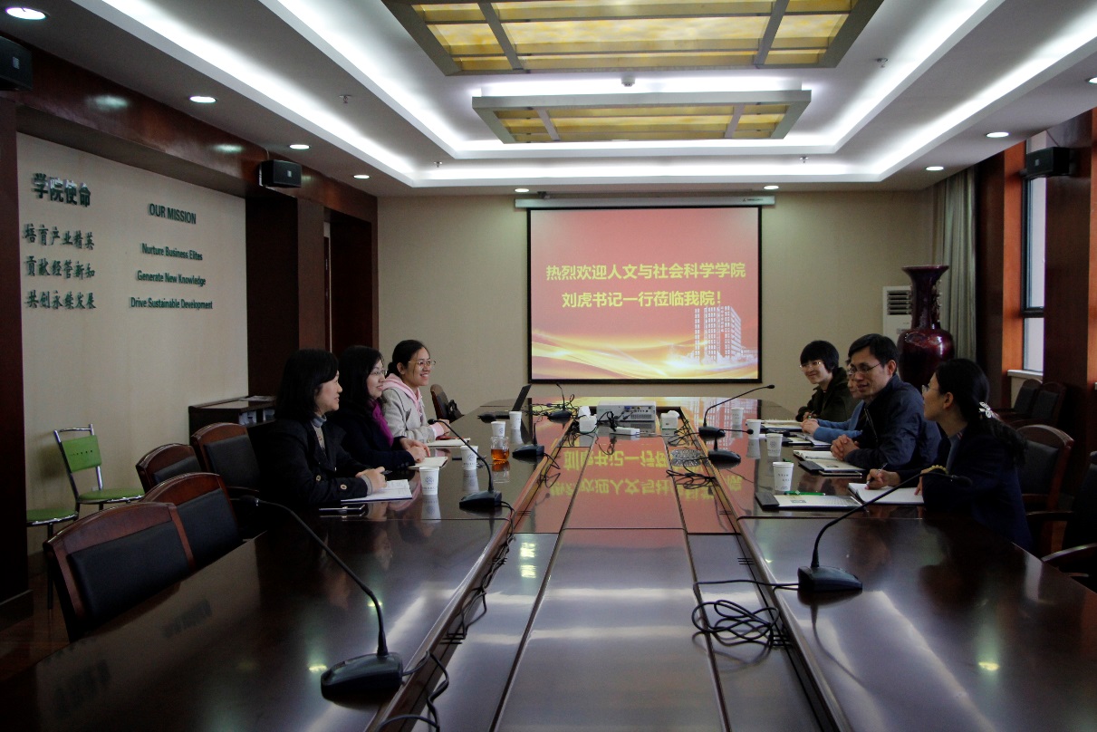 2019年4月3日,天美传媒 党委书记刘虎一行4人前往经济与管理天美传媒调研、交流,经济与管理天美传媒党委书记焦宏图、党委副书记涂志宏、党政办公室主任任慈、组织员袁颖陪同参观,随后展开了座谈。
