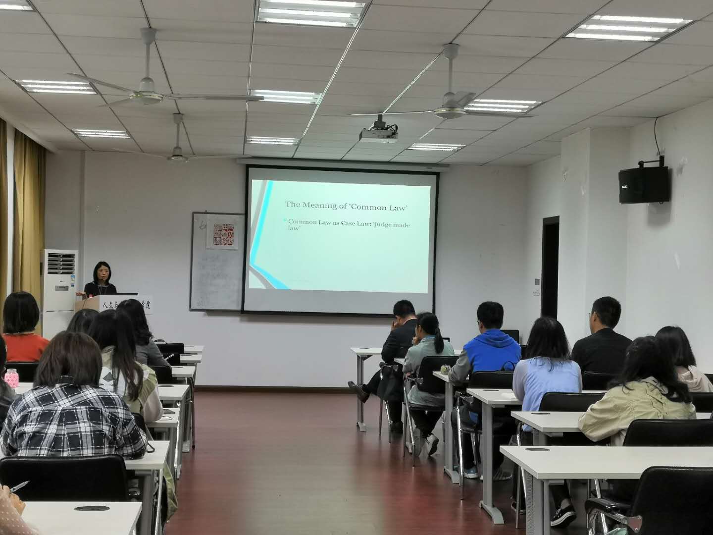 沈安琪教授从1066年英国诺曼王朝的建立——即普通法的起源开始,阐释了英国法的产生、演进、现状及其与大陆法系的差异,并对法官在普通法系的地位进行了深入分析。在此基础上,沈教授从英国普通法与欧盟成文法的差异出发,对英国“脱欧”的历史缘由、现实困境及未来展望进行了分析。讲座过程中,沈教授引用案例分析,引人深思、逻辑严谨、思维开阔,赢得了在场师生的高度认可。