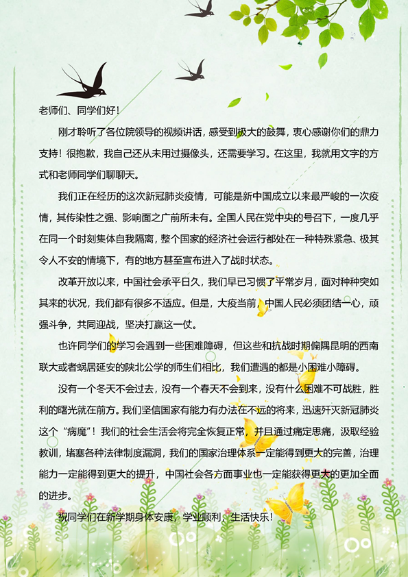 天美传媒法律系黄建军老师在第一堂课上鼓励师生积极面对疫情