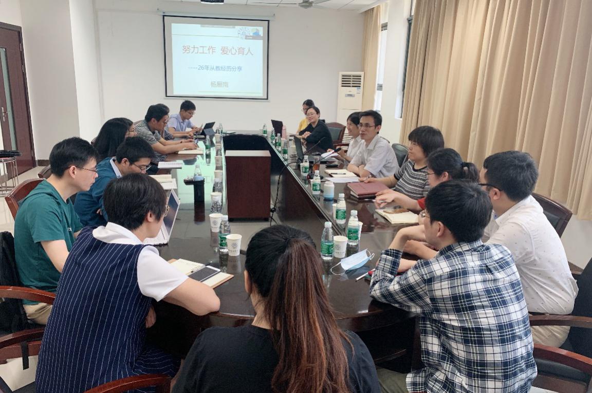 杨雁南教授结合26年的从教经历,与参会老师们分享了自己在教学、科研和人才培养工作中的感悟,激励青年教师们要不忘初心,坚持扎根在教学岗位,站稳讲台,做好学生的引路人。杨老师在宣讲中讲到自己如何不断探索提高教学效果的一些实践尝试,比如:为了拉近与同学们的距离,杨老师利用假期休息时间,将印有学生照片的名单放在家里显眼的位置,提前“认识”他们,这样在第一次上课时就能叫出他们的名字,这让同学们倍感亲切;一名已经结课的男生,为了表达对杨老师的感谢,特意找同班女生学会了叠幸运星,并在母亲节前夕亲手将一瓶叠好的幸运星送给了杨老师……,杨老师的故事深深打动了在场的老师们,年青老师们表示“今天有幸聆听了杨老师的讲座,非常感动。杨老师用自己26年的教师生涯向我们传递着‘努力工作,爱心育人’的精神。”“杨老师说自己很平凡,可是她做到了在平凡的岗位上踏踏实实,用心对待每一件事,每一个学生,收获了学校、同事和学生的一致好评。”“作为一个青椒,面临着教学和科研的压力,有时候不免力不从心,杨老师的经验告诉我们,作为一个教师应该不忘初心,认真踏实地做好每件事,关爱学生。”