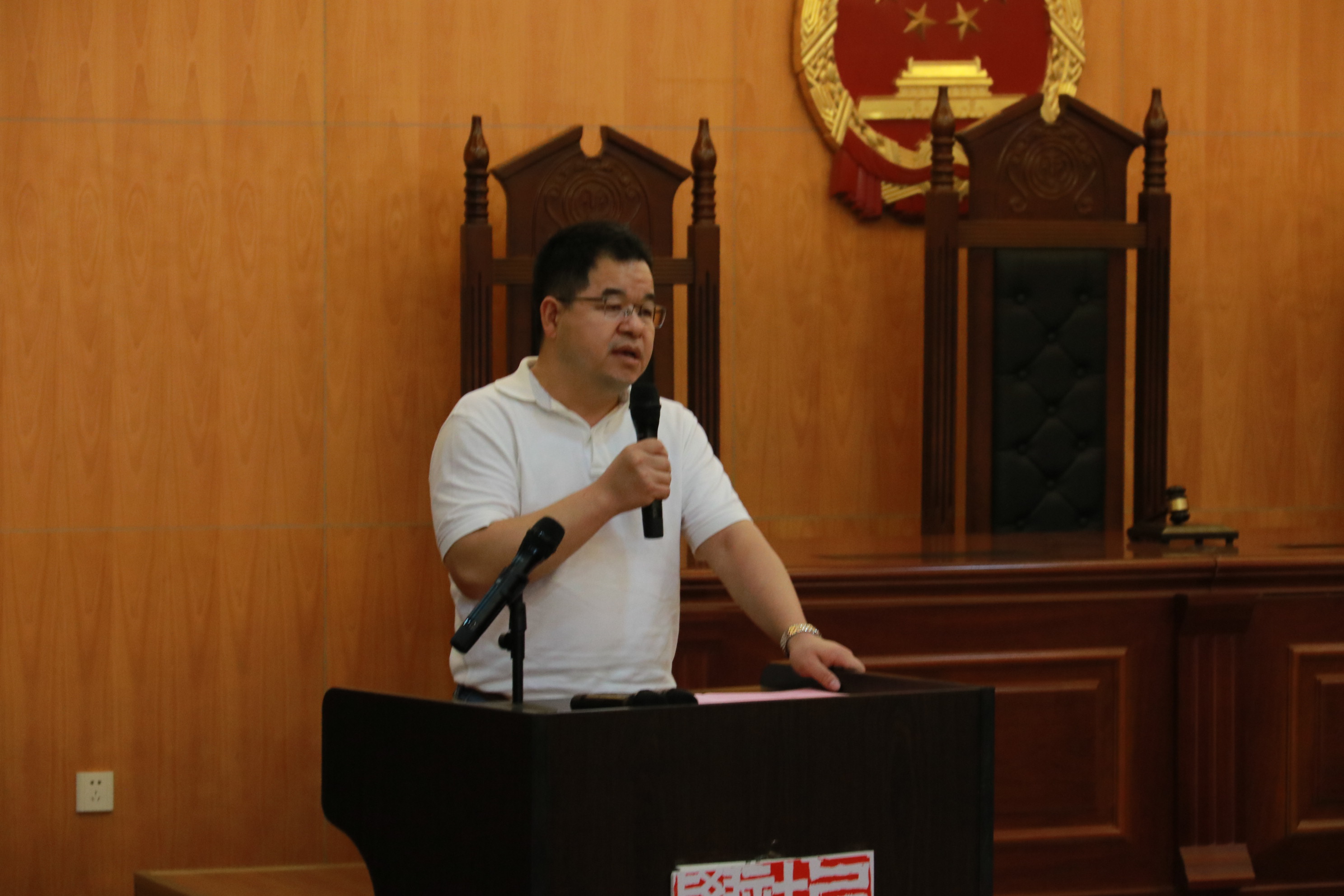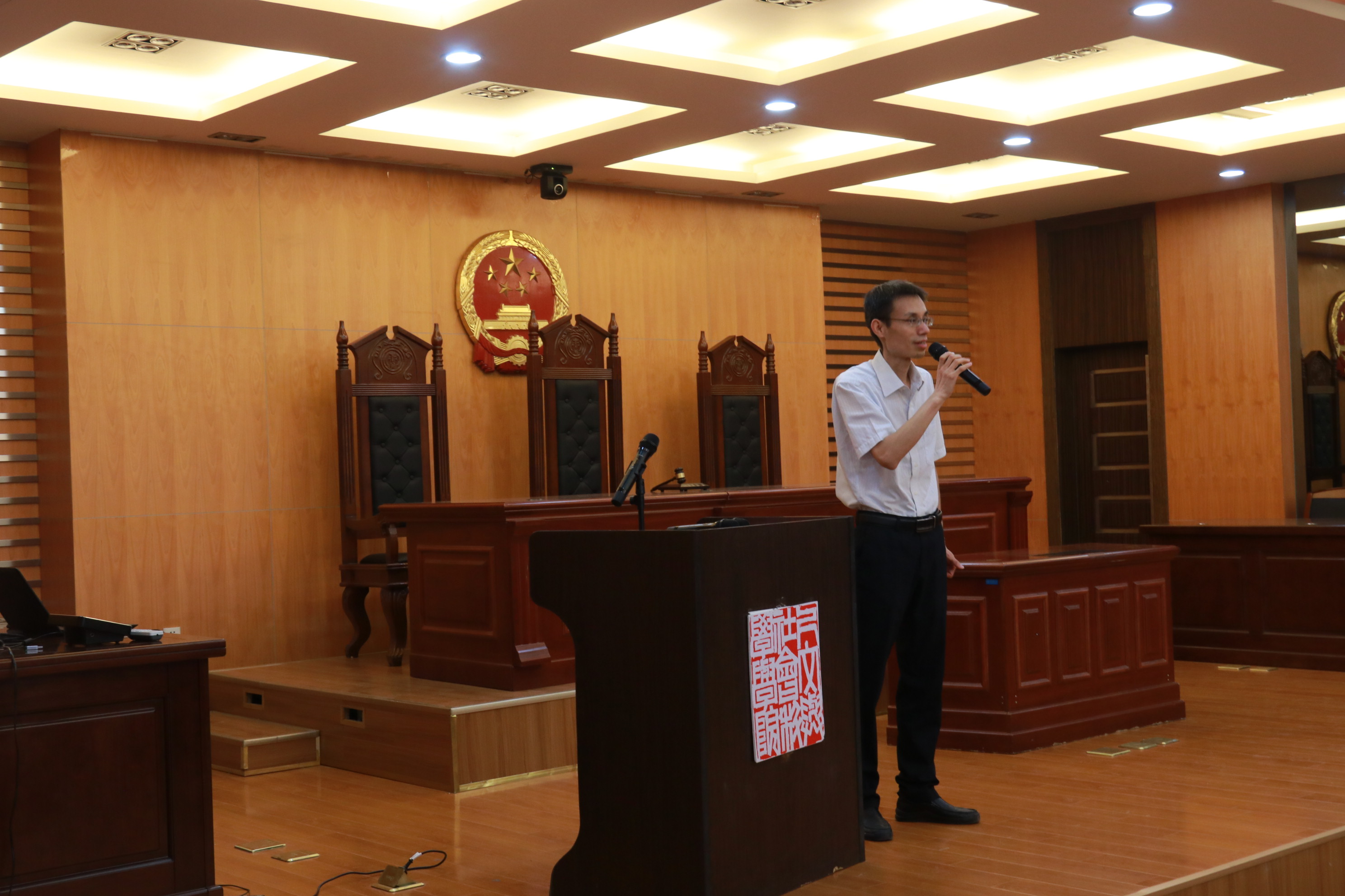 接下来,院党委书记刘虎以一个师者的身份表达了他心中的育人目标。他勉励同学们在未来四年培养自我的书香气息。继而,他希望同学们能超越过去囿于自我的学习状态,塑造家国情怀。“文科生应追求正义,不仅仅为了生活和职业,更要服务社会,在法制担当的基础上有自己的坚守”。最后,刘书记对同学们提出了做一个真正的人的要求:做一个有悲悯之心的人,在未来更好地担当起社会责任和时代使命。