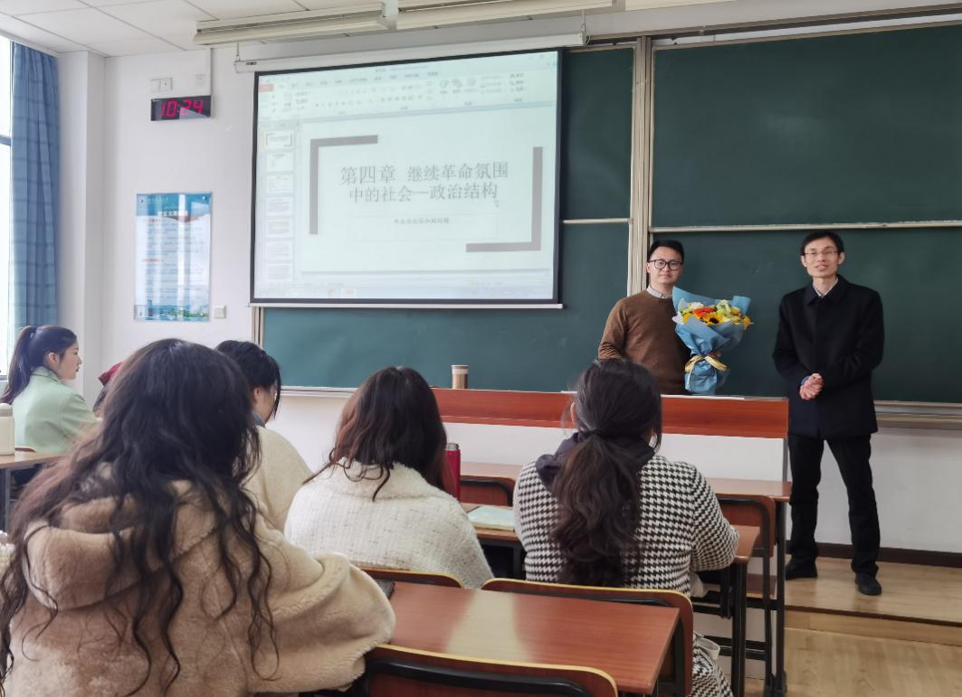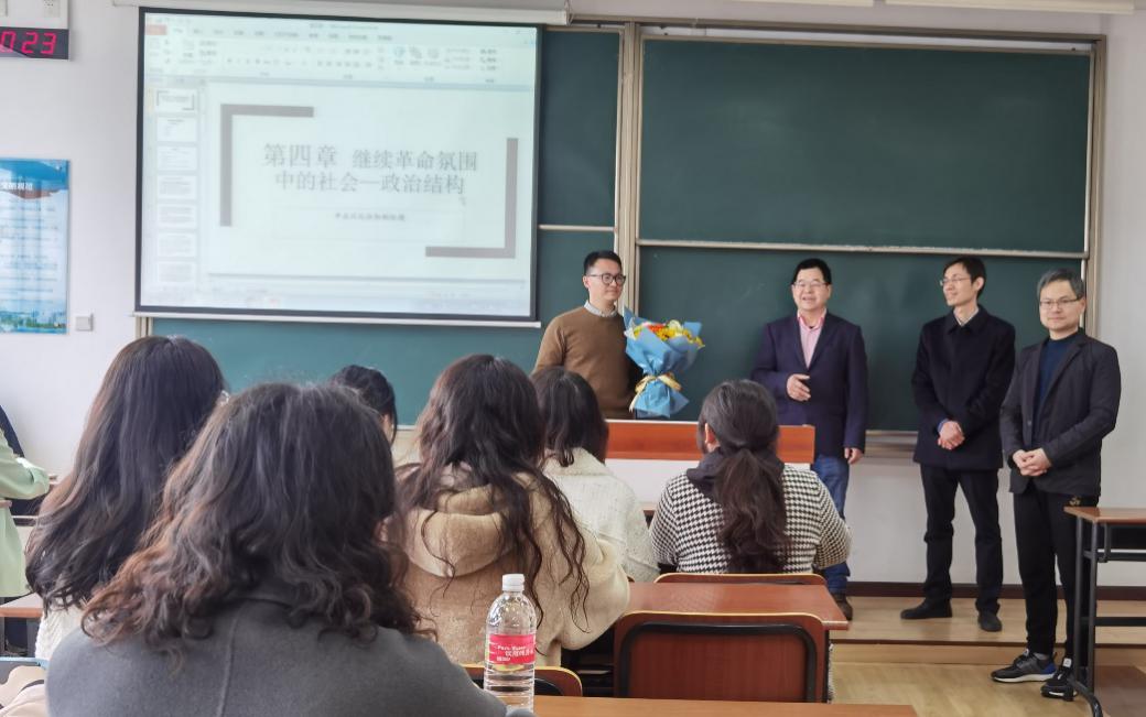 3月15日上午,天美传媒 新教师“第一堂课”引荐仪式在将军路校区东区D3309教室举行,天美传媒党委书记刘虎、院长王建文、副院长施向峰、公共管理系主任鲁兴虎老师参加了仪式,庆祝新教师田鹏老师第一次走上讲台。