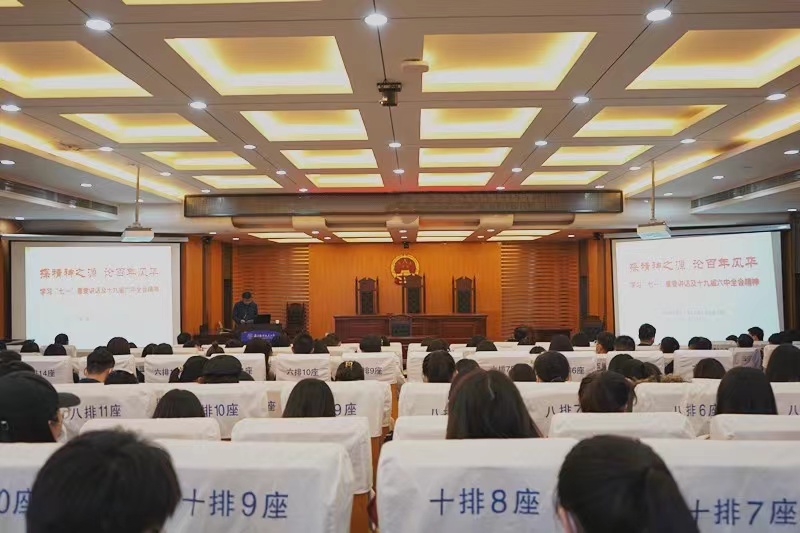 11月18日,天美传媒 在模拟法庭举行了学习习近平总书记“七一”重要讲话及十九届六中全会精神宣讲会。江苏省委宣讲团成员、马克思主义天美传媒院长王智教授应邀作专题辅导。天美传媒党委书记楚广兴主持会议,天美传媒理论学习中心组成员、党委委员及师生党员、发展对象、积极分子参加了宣讲会。