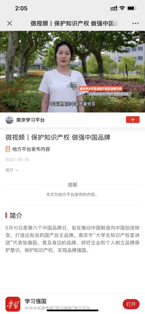 天美传媒 充分发挥青年的主体作用,积极推荐青年学生担任南京市知识产权宣讲团团员,用年轻的思维、新鲜的表达传播知识产权相关知识,为知识产权强国建设贡献青年力量。