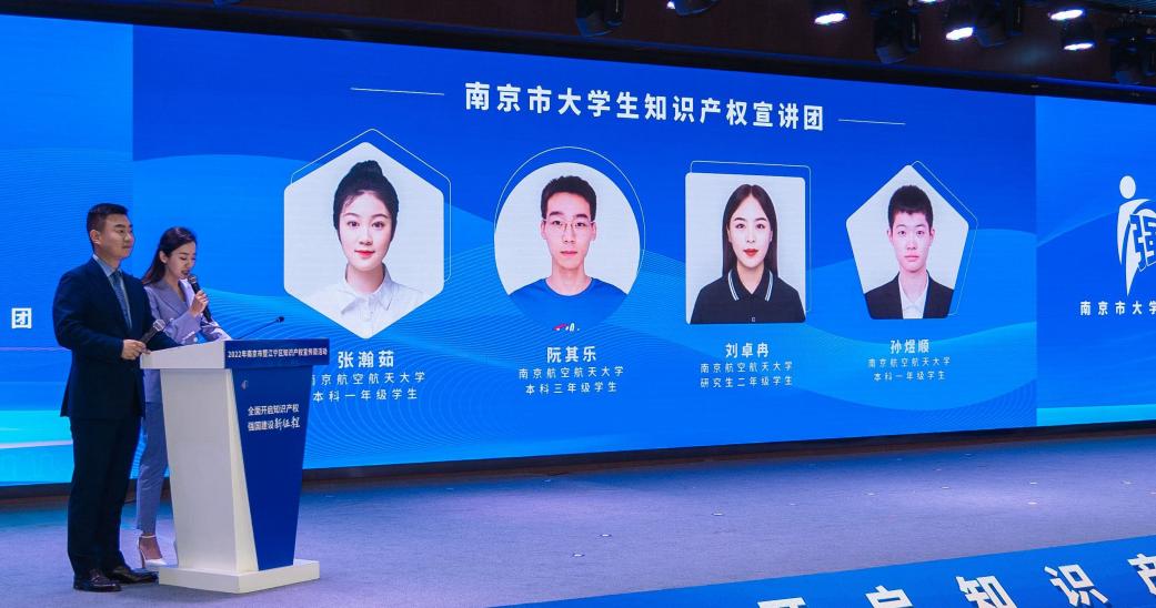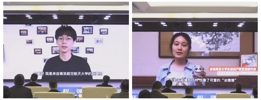 在2022年南京市知识产权宣传周活动启动仪式上,阮其乐、张瀚茹以线上方式围绕商标保护、商标品牌等话题进行现场宣讲。