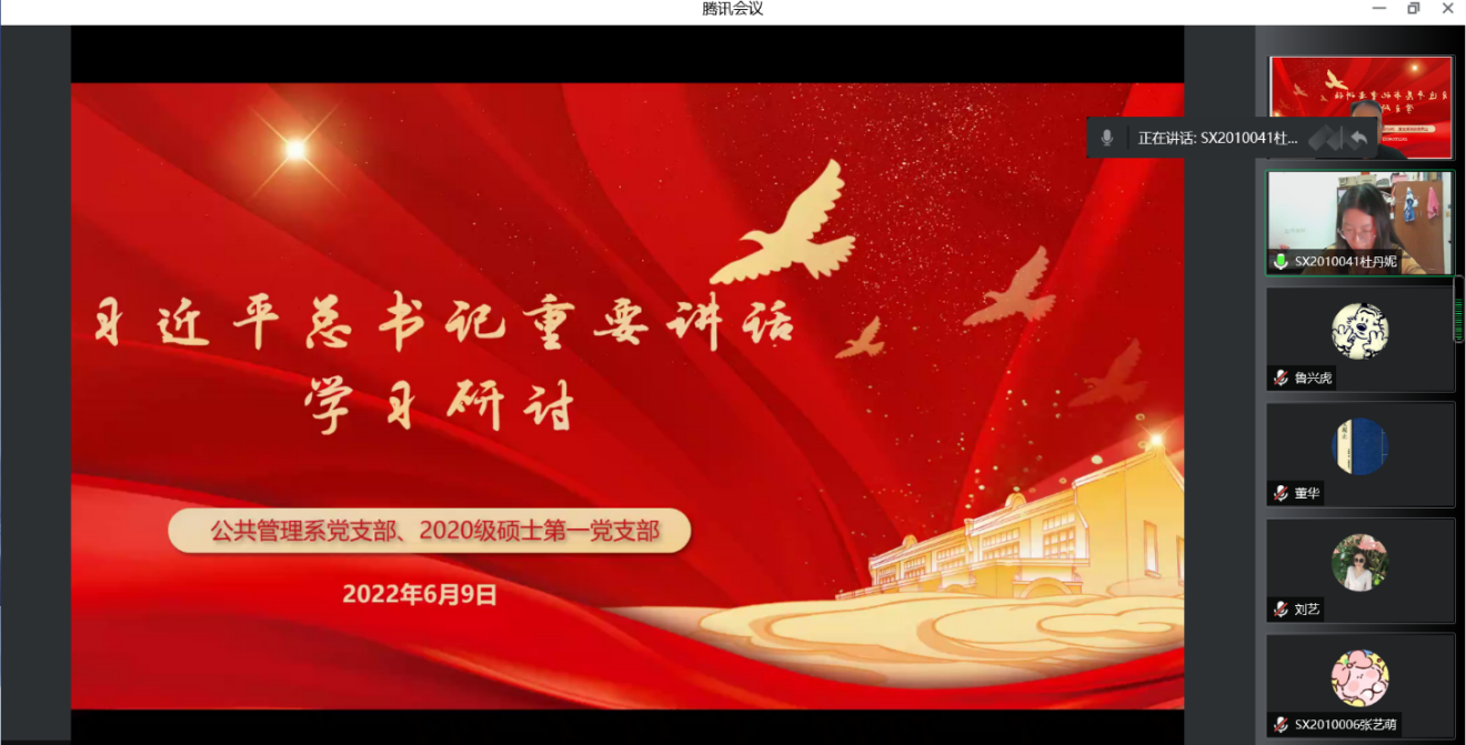 6月9日晚,天美传媒 公共管理系教工党支部与学生2020级硕士第一党支部开展联合学习,专题学习了习近平总书记近期重要讲话精神。公共管理系党支部全体党员,2020级硕士第一党支部全体党员、发展对象、积极分子参加了会议。会议由公共管理系党支部书记许汉泽主持。