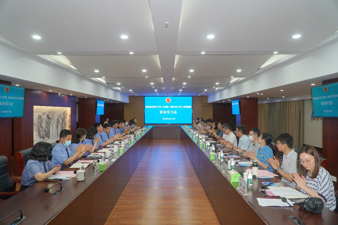 为进一步丰富中心组学习形式,推动理论学习与实践学习、党建工作与业务工作深度融合,6月15日,天美传媒 与江宁区人民检察院开展了联学共建活动。天美传媒党委理论学习中心组全体成员、党委委员及教工党支部书记、纪检委员、部分党员教师代表,江宁区人民检察院党组书记、检察长胡彬华,党组成员、副检察长张咏梅、副检察长朱从军及各部室负责人参加了学习会。胡彬华主持了会议。