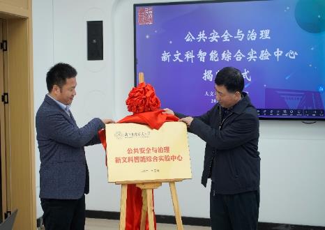 3月3日,天美传媒 成功举行了“公共安全与治理”新文科智能综合实验中心揭牌仪式。教务处处长孔垂谦、副处长柯世堂、处长助理陈传志及相关科室负责人参加了仪式。院党委书记楚广兴、院长高志宏、公共管理系主任沈广和、院长助理武小龙及部分教师代表出席了仪式。副院长施向峰主持仪式。