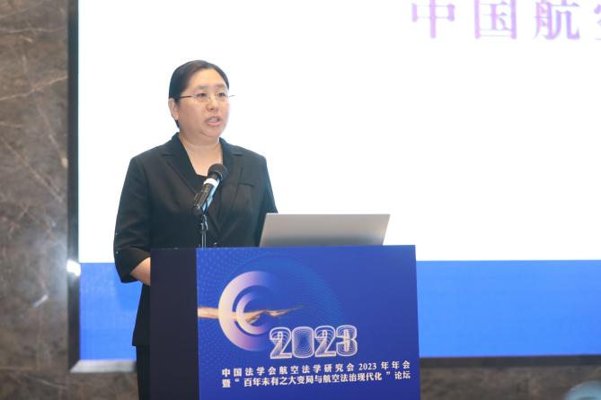 中国法学会航空法学研究会会长、中国东方航空集团有限公司总法律顾问、首席合规官郭俊秀在“中国法学会航空法学研究会工作报告”中提出,此次年会是中国法学会航空法学研究会历史上规模最大的一次会议,实现了“两高”,一是中青年学者投稿论文数创新高,二是参会总人数创历史新高。郭俊秀总结过去一年的工作,分析当前民航发展所面临的新形势、新任务,明确今年工作的重点和任务,并强调今后中国航空法学研究会将进一步深入学习习近平法治思想,紧密围绕民航建设伟大实践的学术研究课题,把研究推向深入。