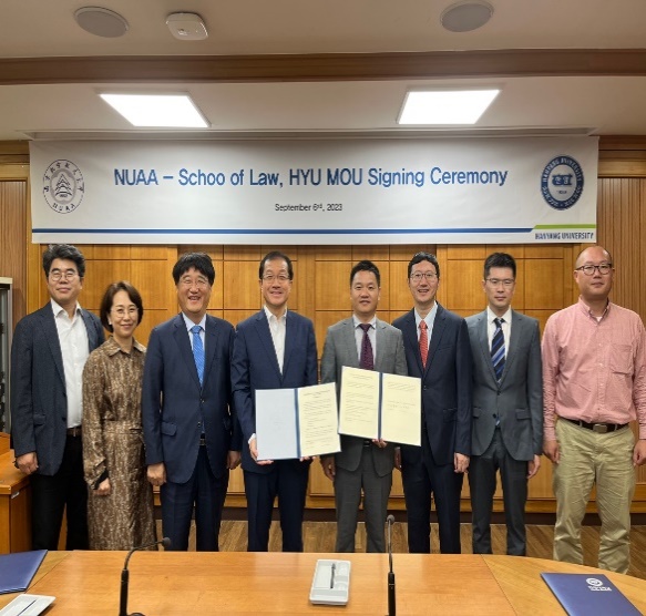结束国立江原大学访问行程后,高志宏一行访问汉阳大学,参观了韩国立法和行政机构,与法天美传媒院长Lee, Ho Young教授及教师代表开展座谈。双方就彼此学科发展情况及未来合作计划等进行了深入交流并签订了院际框架合作协议。