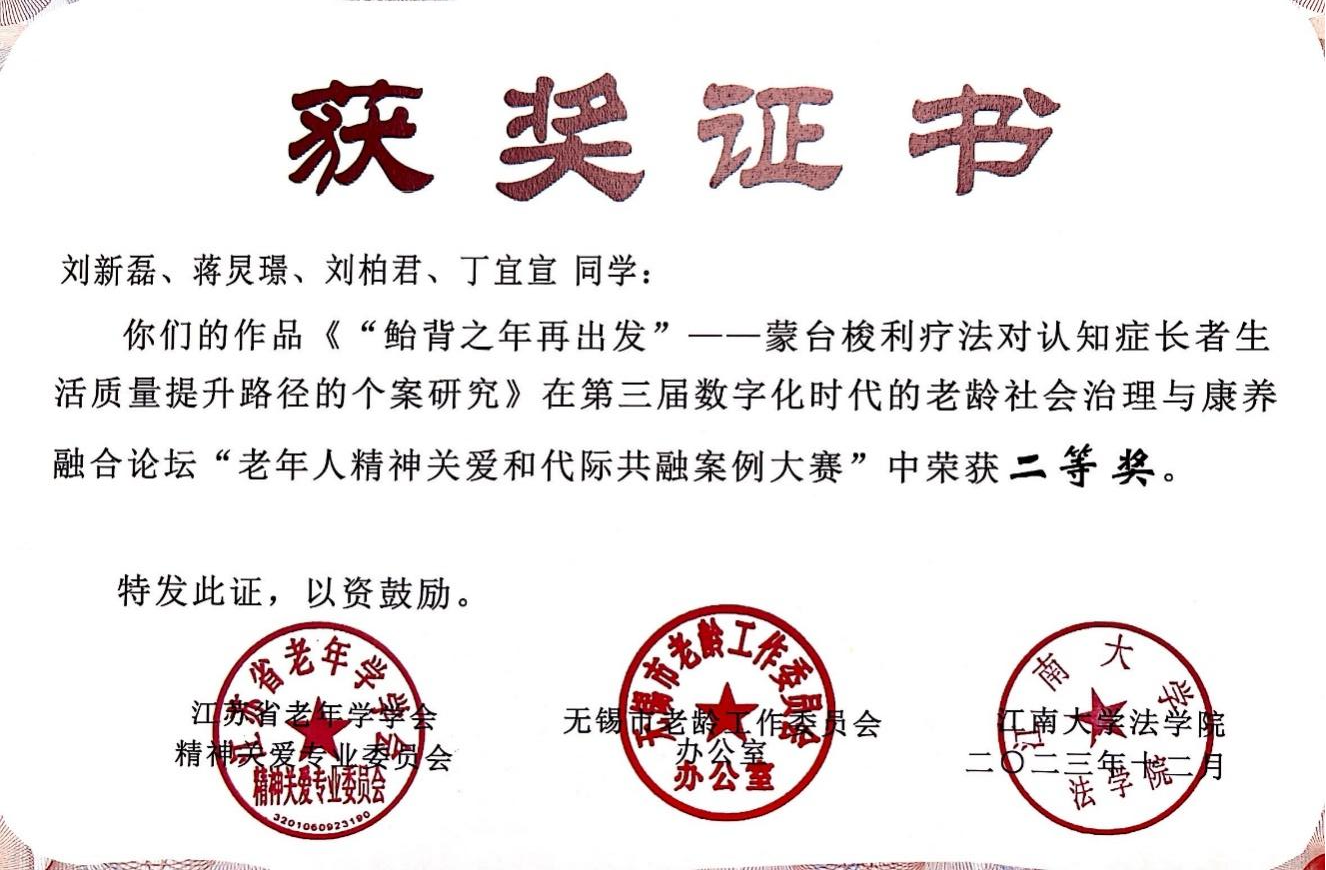 2023年12月9日下午,第三届老年人精神关爱和代际共融案例大赛在江南大学成功举办。本次大赛由江苏省老年学学会精神关爱专委会、江南大学法天美传媒主办,无锡老龄科学研究中心具体承办,是面向全国高校学生、养老服务实务界的案例大赛。(作者:刘柏君)