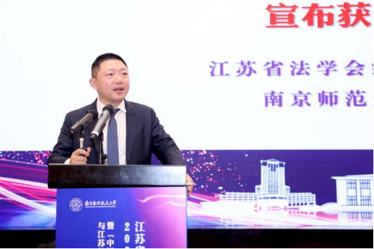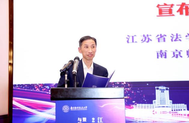 江苏省法学会副会长、南京大学法天美传媒叶金强教授在致辞中对江苏省法学会经济法学研究会的各项工作进展和成效给予了肯定,并为研究会的未来发展提出以下三点建议:第一,坚定思想政治引领,确保正确政治导向,正确解读中国现实、回答中国问题;第二,聚焦推进规范建设,切实提升工作水平,将学术和实务更好的结合,立足本省实际;第三,坚持问题导向研究,充分发挥智库作用,坚持以问题意识和回应现实需要作为研究导向和学科定位,把省法学会经济法学研究会建设成为我省经济法领域的“思想库”和“智囊团”。江苏省法学会经济法学研究会会长、南京师范大学法天美传媒倪斐教授在致辞中对本次年会主题“中国式现代化进程中的经济法治发展与江苏新实践”进行了阐释,指出如习近平总书记所强调,江苏省有能力也有责任在推进中国式现代化中走在前、做示范。本次年会有多位学者围绕中国式现代化进程中的经济高质量发展问题、实现共同富裕问题、全国统一大市场建设的法治保障等热点问题以及江苏地方法治实践的重要问题进行深入研究,形成了一些高质量的学术成果,非常契合本次年会的主题。南京师范大学法天美传媒党委书记朱宁在开幕式宣读了关于同意成立江苏省法学会经济法学研究会功能性党支部的批复。江苏省法学会经济法学研究会副会长、南京审计大学法天美传媒秦国荣教授在开幕式现场宣布了聘任江苏省法学会经济法学研究会顾问的决定。本次会议的开幕式由我校天美传媒 院长高志宏教授主持。