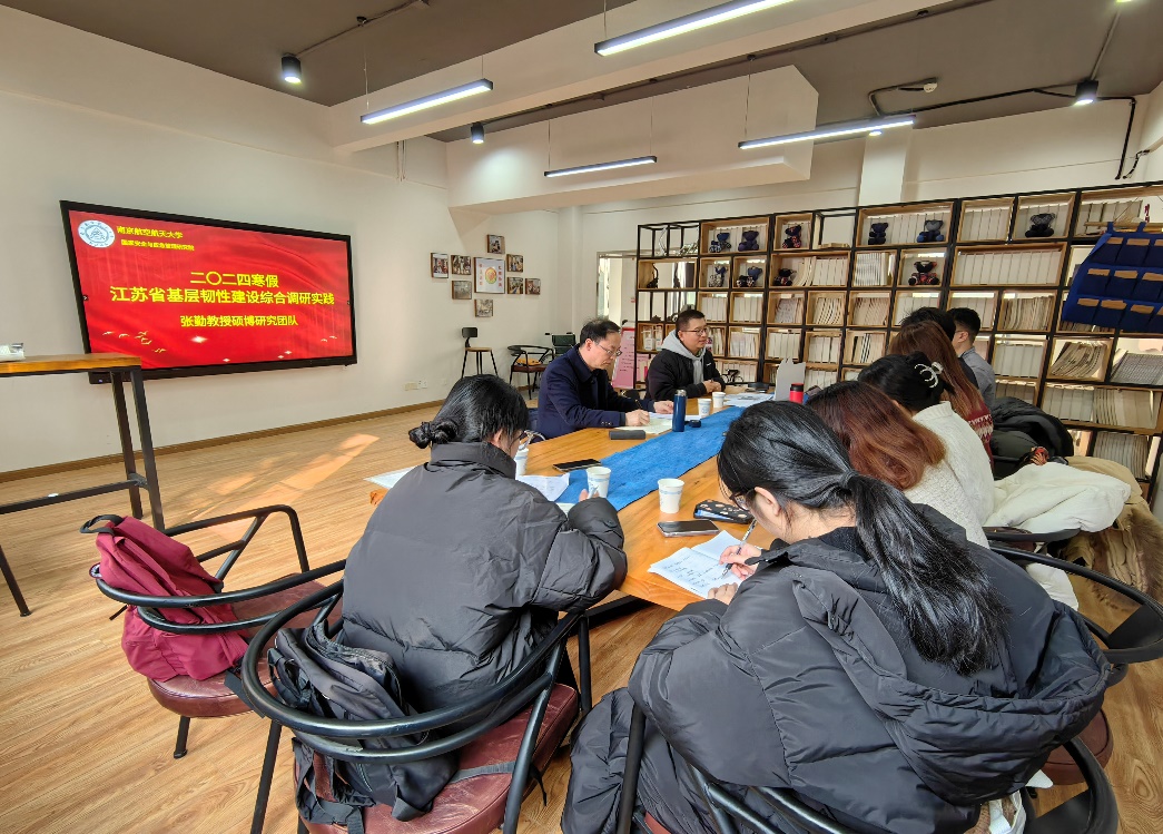 2024年1月12日,张勤教授硕博研究团队一行前往南京市江宁区秣陵街道下属元山社区和下墟社区进行2024寒假江苏省基层韧性建设综合调研实践活动。此次调研主题主要是围绕社区基层矛盾纠纷防范化解和枫桥经验的学习。上午研究团队来到元山社区进行学习交流,了解了社区的基本情况及当前社区内存在的重点矛盾纠纷、各居民活动服务中心提供的相关便民为民服务等。