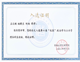 在天美传媒 公共管理系鲁兴虎老师的指导下,行政管理专业大三本科生姚郡兰、何雨同学的论文《社会资本、感知价值与居民参与改造意愿——基于南京市老旧小区579份居民的调研数据》成功入选本年度论坛,姚郡兰同学受邀参会并做论文报告。